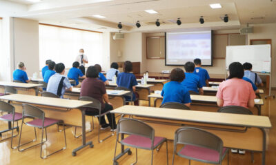 7月17日(木)、株式会社大塚製薬工場から佐藤文範氏を講師にお招きし、「高齢者の脱水・熱中症と水分補給について」というテーマで、全事業所の職員を対象に研修を行いました。