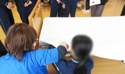 10月、社会福祉法人青森県社会福祉協議会 青森県福祉人材センター主催の「福祉の仕事“あれこれ”出前講座」の一環で、弘前市立新和中学校(佐藤史子校長)の1年生を対象に、介護の仕事について紹介しました。