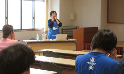 10月24日(金)、青森県歯科衛生士会から、副会長の阿保ひとみ氏と歯科衛生士の相馬美智子氏をお招きし、口腔衛生管理について学びました。