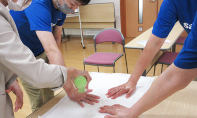 サンタハウス弘前では、介護職員の排泄ケアの見直しとスキルアップのため、ユニ・チャーム株式会社と職員総合教育研修室が協同で排泄ケア研修を行っています。