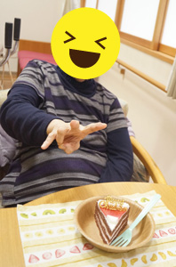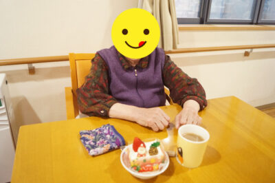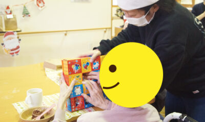 12月24日(水)は1ユニットの入居者様がクリスマスケーキを食べ、入浴剤のプレゼントを受け取りました。