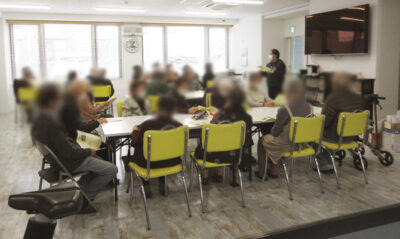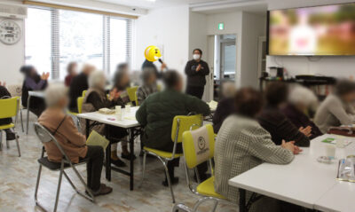 昼食後には運営懇談会が開かれ、阿保施設長より、12月時点の入居状況説明や職員の紹介、設備やサポート内容、留意点などについて説明がありました。