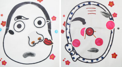 まずは、お正月の定番「福笑い」で職員が対決! 利用者様の声を頼りに、顔のパーツを選んで配置していきます。「誰だ?“ほっぺ”を“目”って教えたの?」面白い顔の完成に、会場は笑いに包まれました。