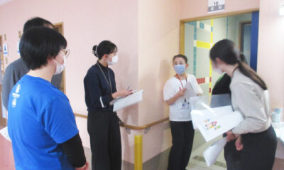 演習終了後は、介護老人保健施設の認知症専門棟を訪れ、実際の現場を見ながら、ゾーニングや感染対策の実施について助言をいただきました。