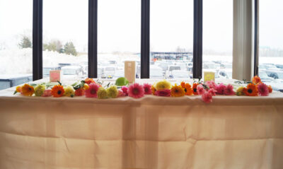 岩手県大船渡市など気仙地域の郷土菓子「四方焼き」、宮城県気仙沼市で広く親しまれている「紅梅の揚げパン」、福島県で定番土産「ままどおる」、福島県産の桃を使用したゼリーの中から、お好きなものを選んでいただきました。宮城県気仙沼市から取り寄せたコーヒーも提供。