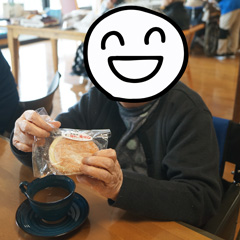 久しぶりに食べる揚げパンに喜ぶ入居者様。
